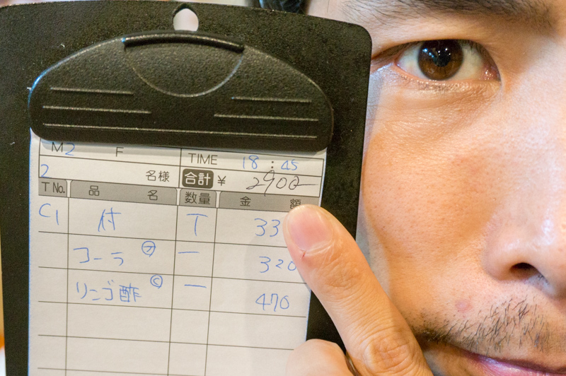 「味人」のオーダー内容 (料理の価格は税抜き)