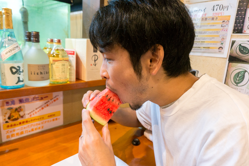 あの〜よかったらスイカ食べます?店長が作ったスイカをみなさんに召し上がっていただいてるんですよ〜!