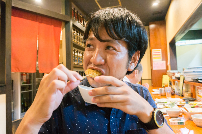 揚げ物最高ですね〜!自分用のソースの器もあるので二度づけもできます!笑