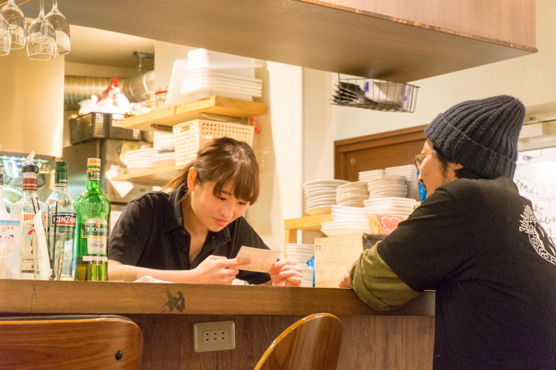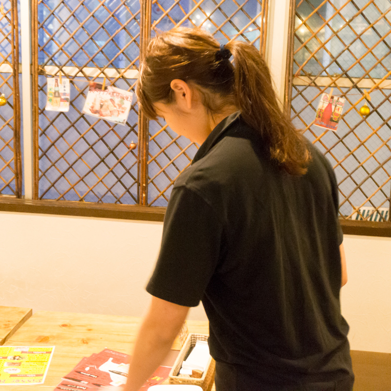 カトゥーが気にしていたのはテーブルを片付けているスタッフのあかりさん。