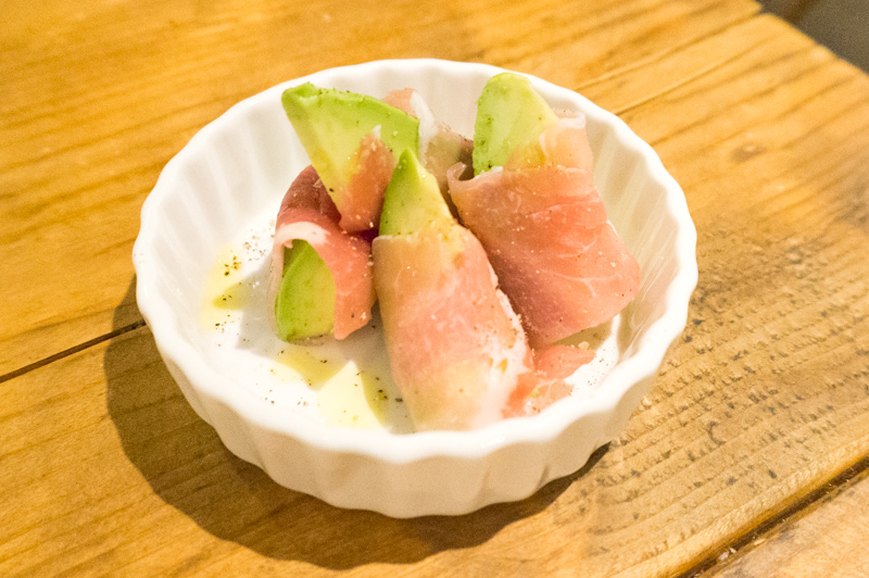 アボガドの生ハム巻き(¥480+tax)