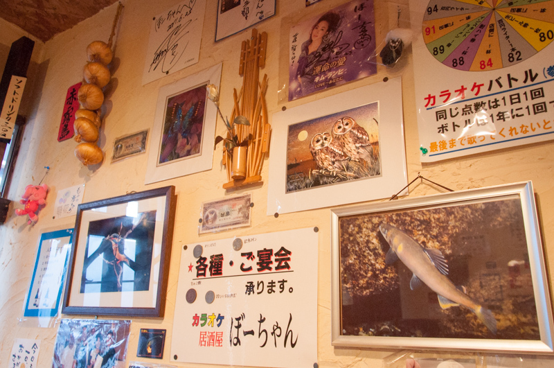 「ところでなんですが、席の隣の壁、いろいろとツッコミどころがあって面白いです、ほら」