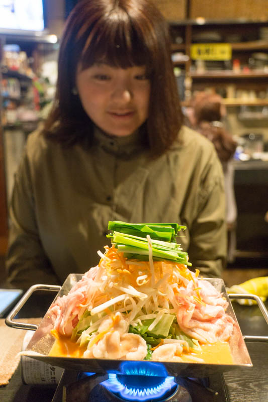 「オススメはなんですか?」お店のお母さん(顔出NG)「ぼーちゃん鍋が一番人気よ。それ以外だと手羽餃子!」