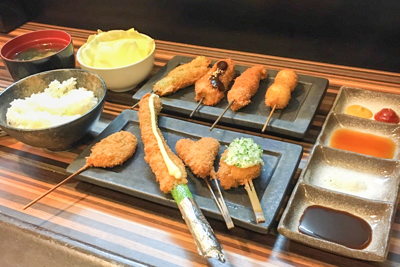 お昼から揚げたてサクサクの串かつを自分のペースで楽しめるのはちょっとした贅沢気分を味わえます。