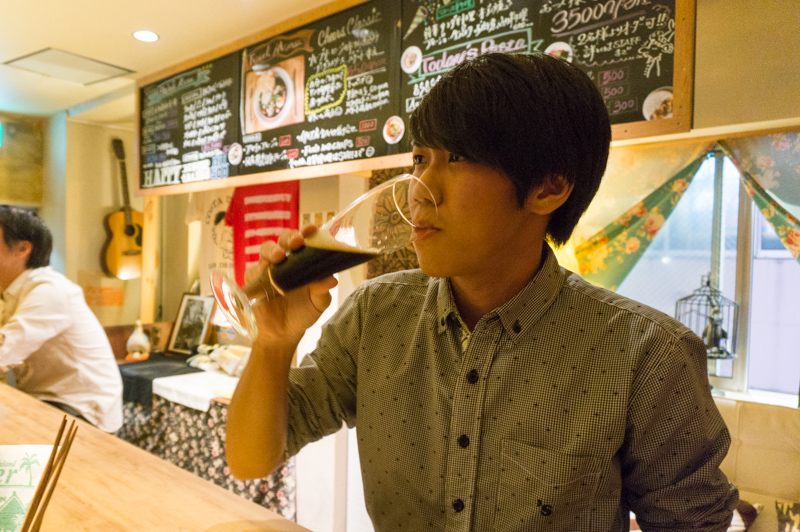「デンちゃん飲みすぎたらあかんで(笑)俺が頼んだ黒ビールも、苦味の中にふんわりとした甘さがあって飲みやすい。ビールやのに甘みがあるなんて不思議な感じ!でも、香りはしっかりとしたビールやわ。美味しいで。デンちゃんも一口飲んでみる?」