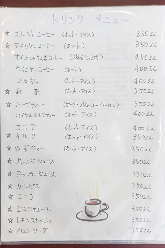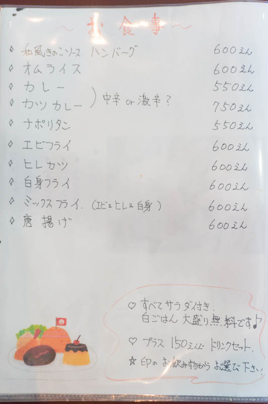お食事メニュー。