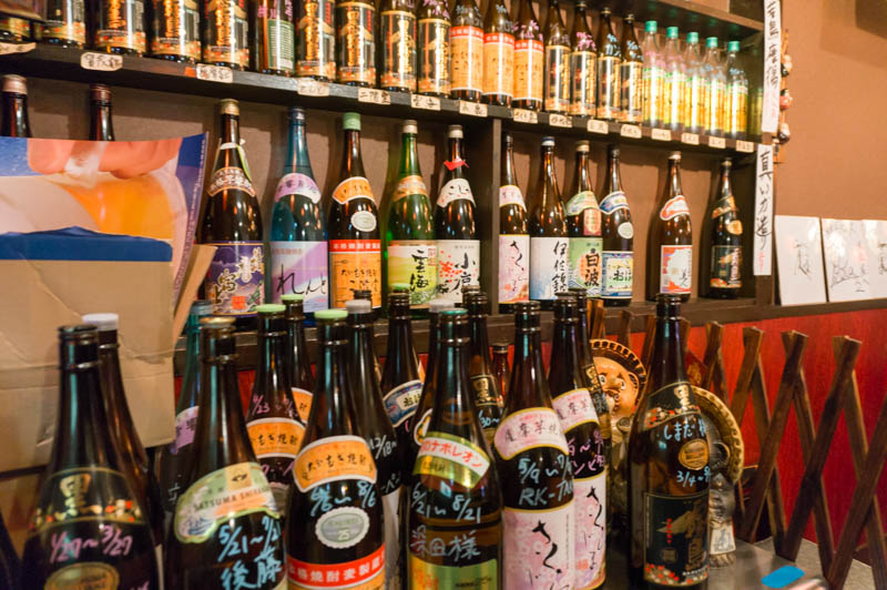 ボトルキープの一升瓶がずらり。