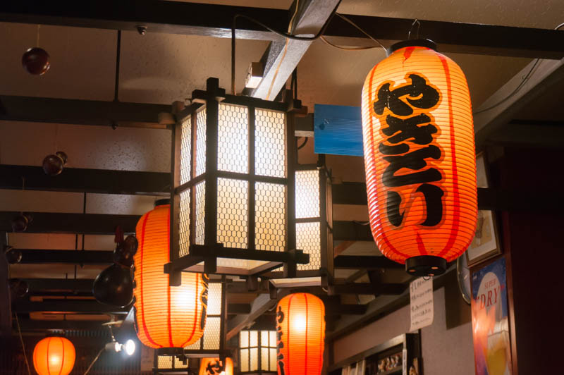 店内には天井からいくつも提灯がぶらさがっています。