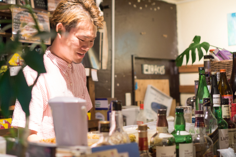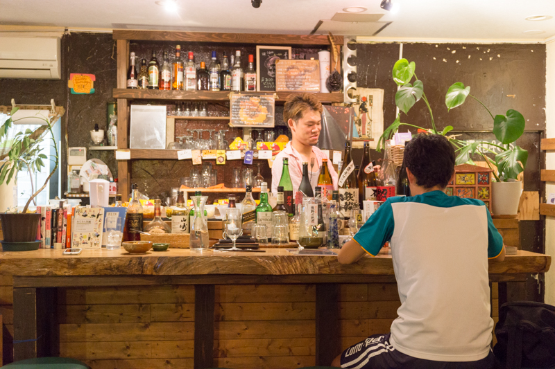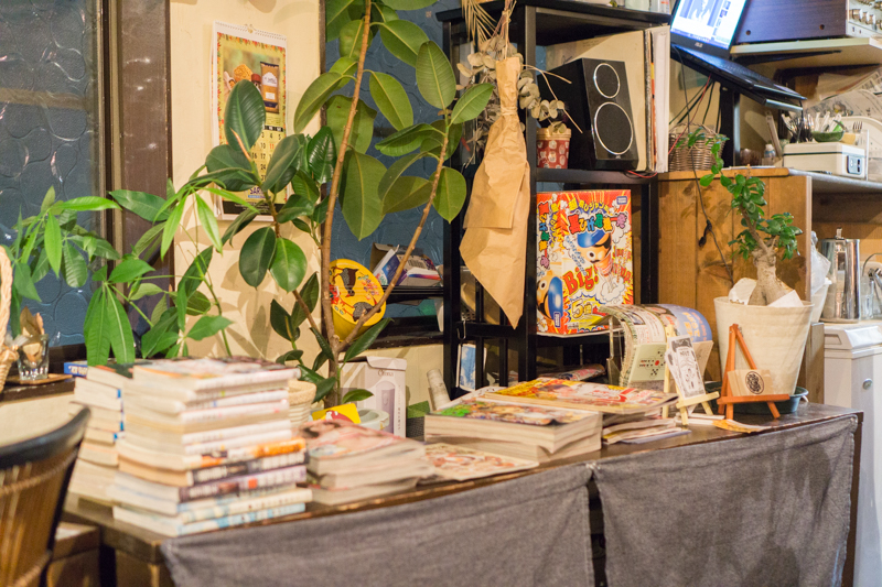 (その背後に見えるお酒と漫画が並ぶカウンター席。週に3回通う常連さんもいらっしゃるそうです!)