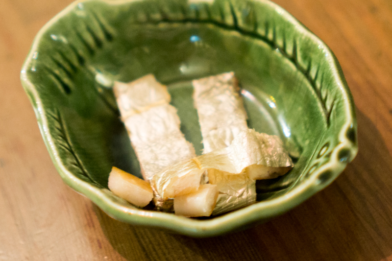 突き出し(常連さんが作って下さったという太刀魚の薫製) ¥0(料金なし)