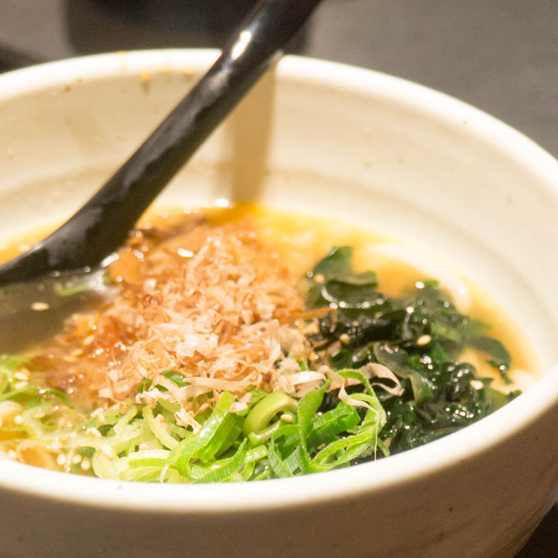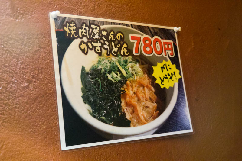 ホントは焼肉を食べる気満々でお店に入ったんですが、目に入ったのは焼肉屋さんのかすうどんのポップ。麺好きとしては行くしかないよな、と思い、焼肉を食べるモードになっていた口をうどんへと頑張ってチェンジ!
