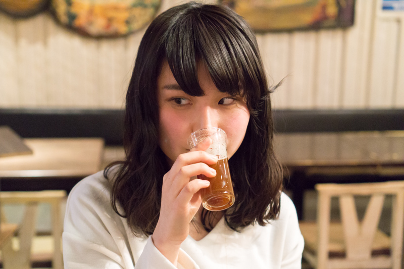 「ビールを美味しいって思ったの初めてです。あっさしているから、酎ハイやカクテルより飲みやすいかも!ビールは喉で味わうものって聞いてたんですけれど、これはゆっくり楽しみながら飲みたいビールですね!」