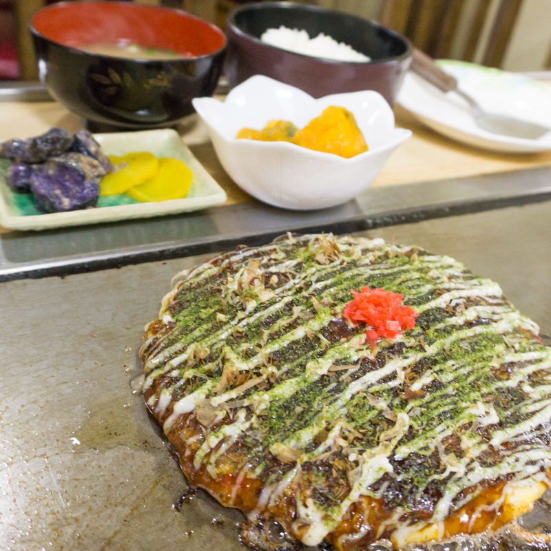 「お好み焼 ほほえみ」の『お好み焼定食』【ひらつーグルメ】
