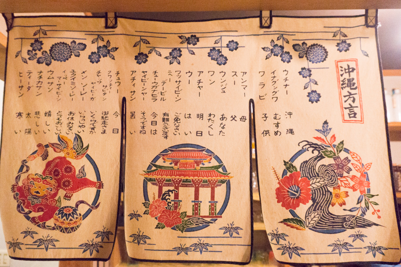 沖縄方言ののれん。イッペーマーサイビーン♪(とてもおいしい)