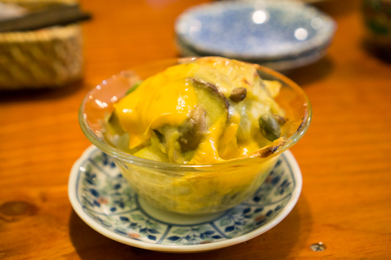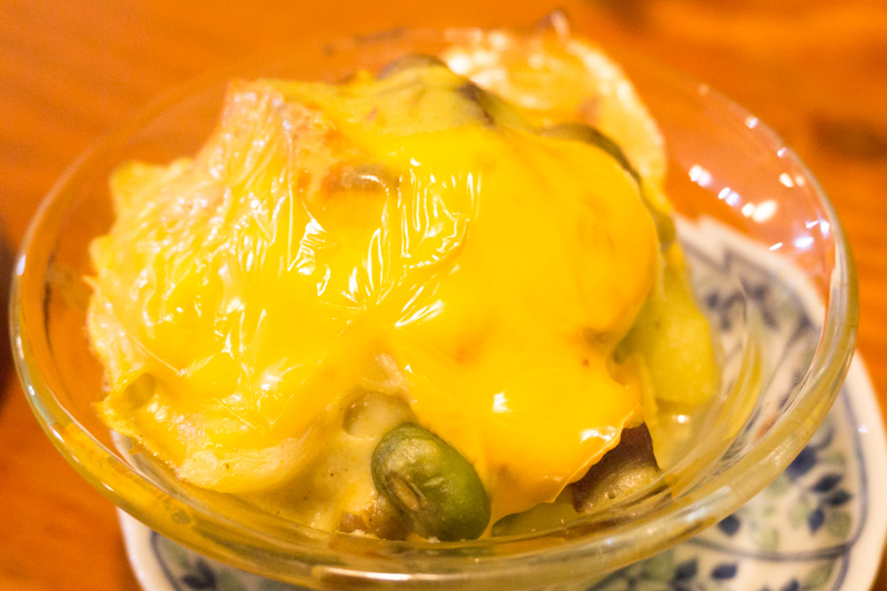 とろとろのチーズとほくほくのさつまいもがたっぷり!!枝豆としめじも入っています。カレー風味がちょうどいい加減で、初めて食べる個性的なグラタンでした。
