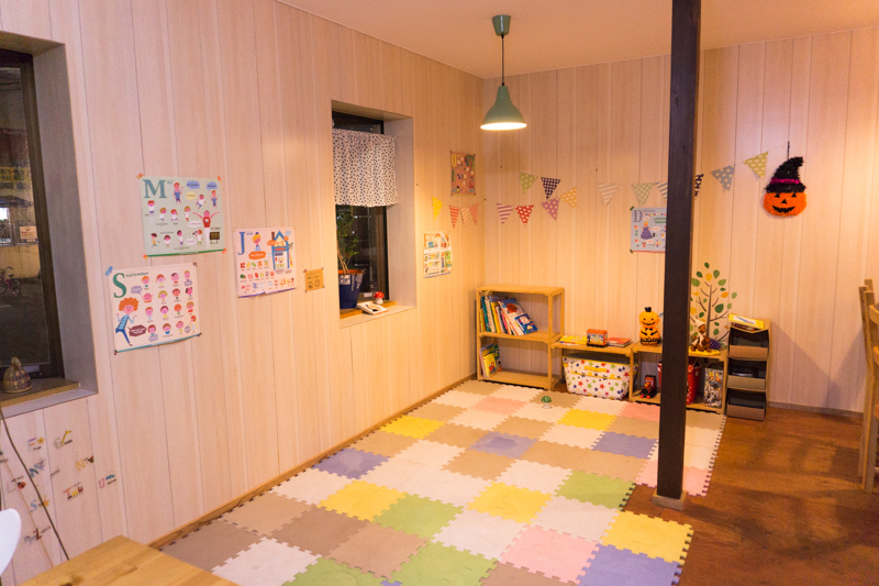▽さらに2階席もあります。お昼と比べて夜はキッズスペースもムーディーな雰囲気です。