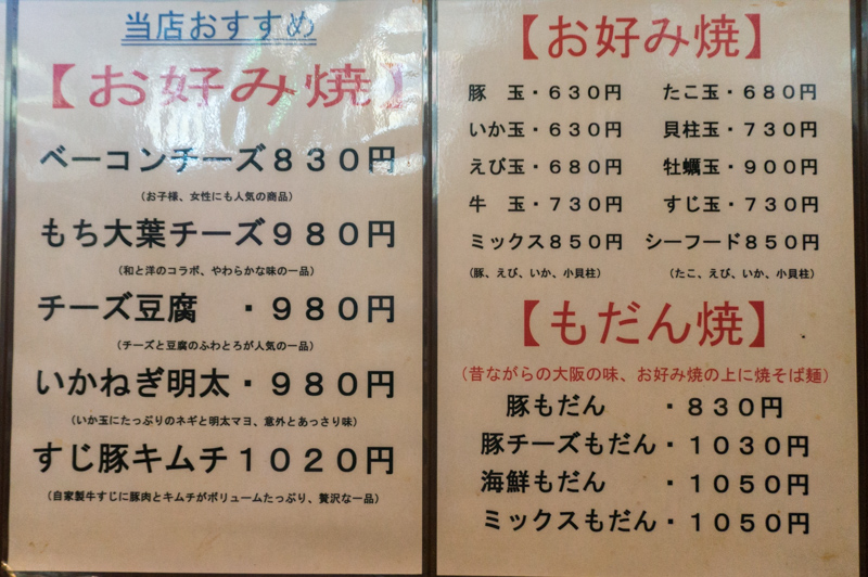 香里ケ丘のピーコックそばにあるお好み焼き屋さん。