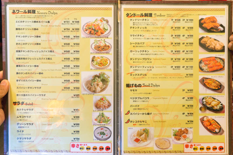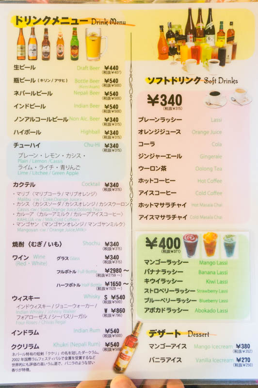 カレーの他にもあまり口にしたことの無いネパール料理が数多くメニューに並んでいました。