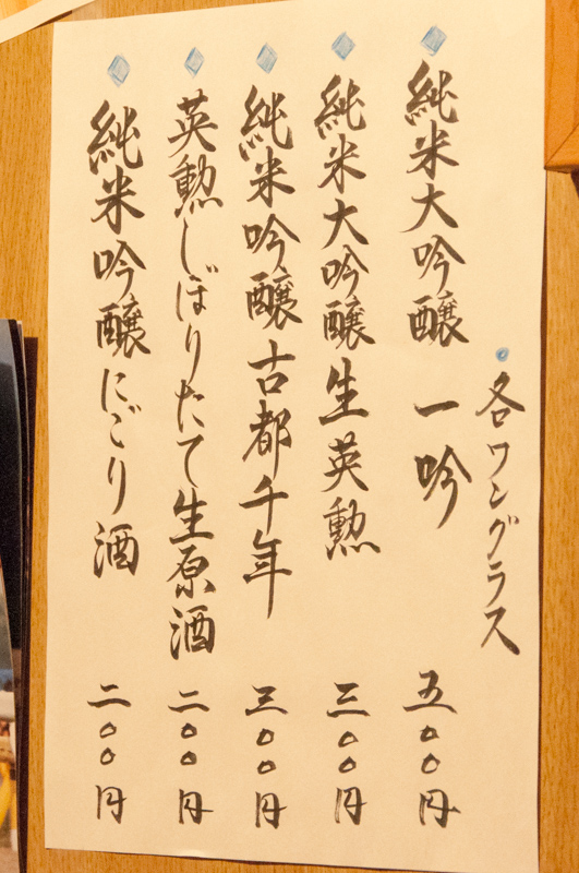 純米大吟醸と純米吟醸を頼んで、まだ2,200円も残っています。恐るべし丸天房。