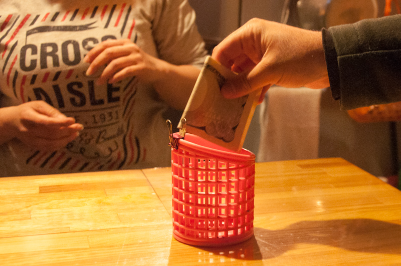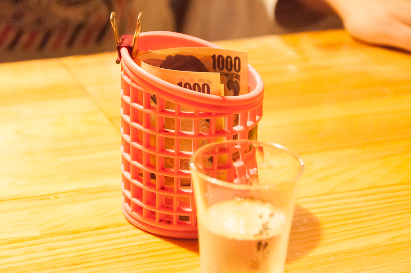 このお店、とある事情でこのカゴに先に使うお金を入れて、頼むごとにお金が減って行くと言う引き算方式なんだそう。すどん&おさやも初めての仕組みで驚き!