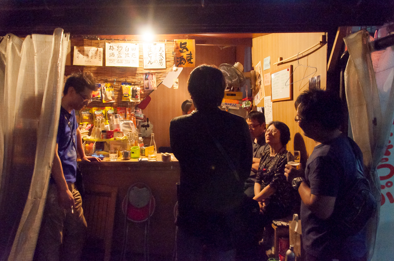 常連のお兄さん「冬はおでんが真ん中に並ぶよ。でも夏はこれって言うメニューがないねんな〜。」