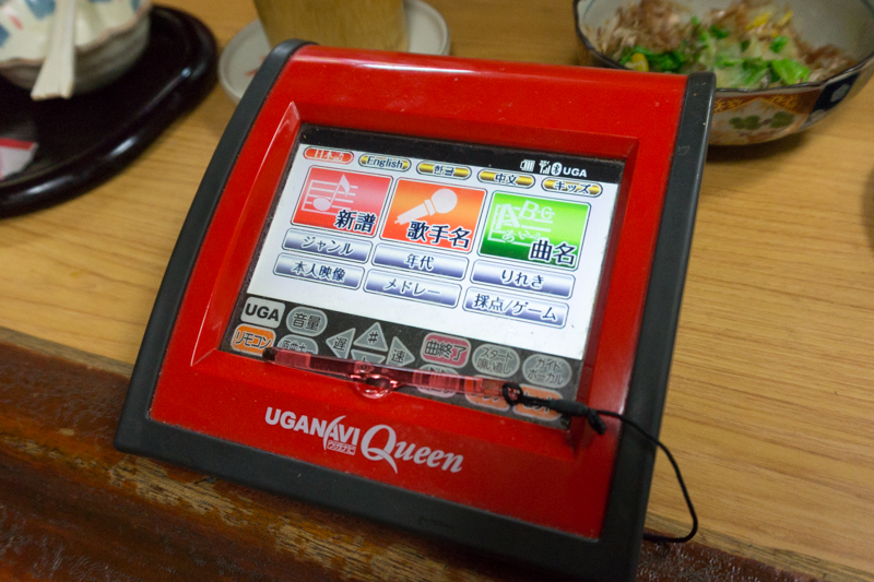 カラオケのタッチパネルがカトゥーの横にそっと現れます。