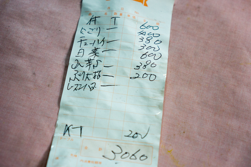 ▽「居酒屋 まつお」でのオーダー内容