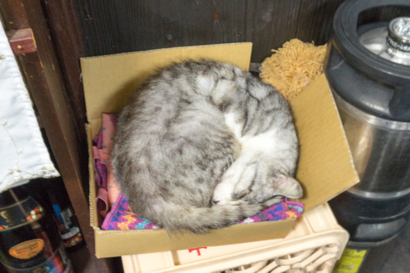 店内の暖かさに、猫ちゃんも気持ちよさそうに眠っています。なかなかこういう居酒屋に行かないタクワンは少しだけ緊張(笑)