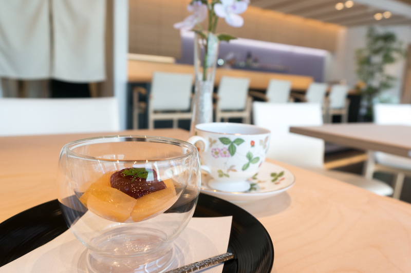 こちらはデザート、りんごのコンポートと紅茶。と店内の様子をちらり。