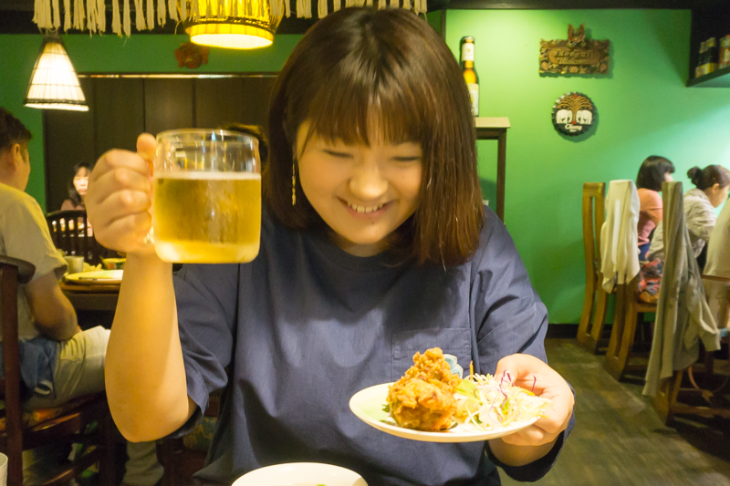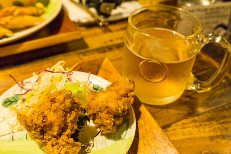 おさやが注文したセットは唐揚げ付き。唐揚げとビール、なんて最&高な組み合わせなんでしょう。