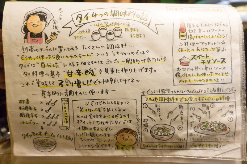 メニュー表にも詳しい調味料のかけ方が載っていますのでぜひ料理のアレンジをお楽しみあれ。