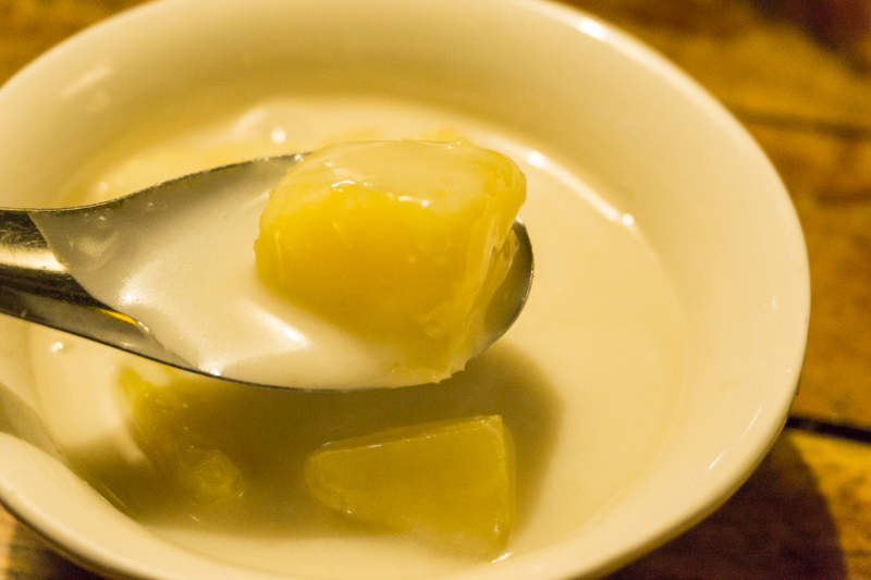 一瞬フルーツ?と思ってしまったこちらの黄色い食べ物。実は甘〜いお芋さんでした。白いクリームはココナッツミルク。濃厚でかなり癖になる味です。