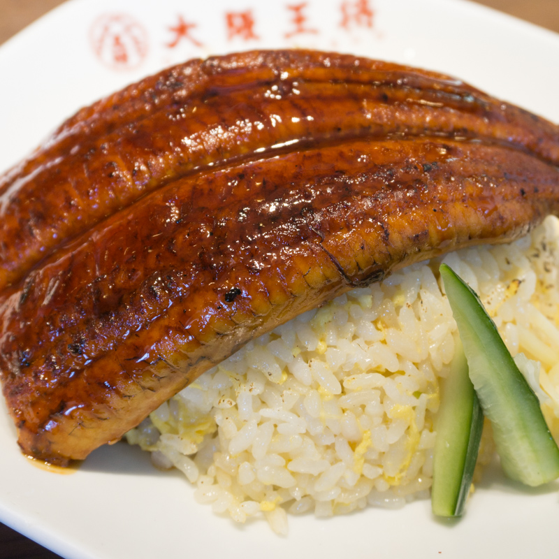 たっぷりのタレがかかった肉厚なうなぎがどーんと!!大胆に炒飯の上に乗っています。