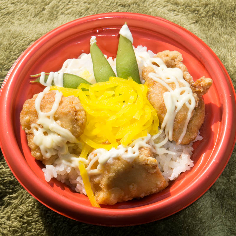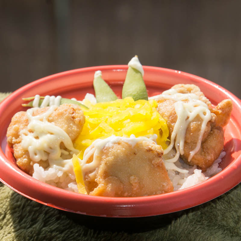 唐揚げ単体もいいですが、ご飯メニューも食べたいと思ったので、唐マヨ丼を注文。