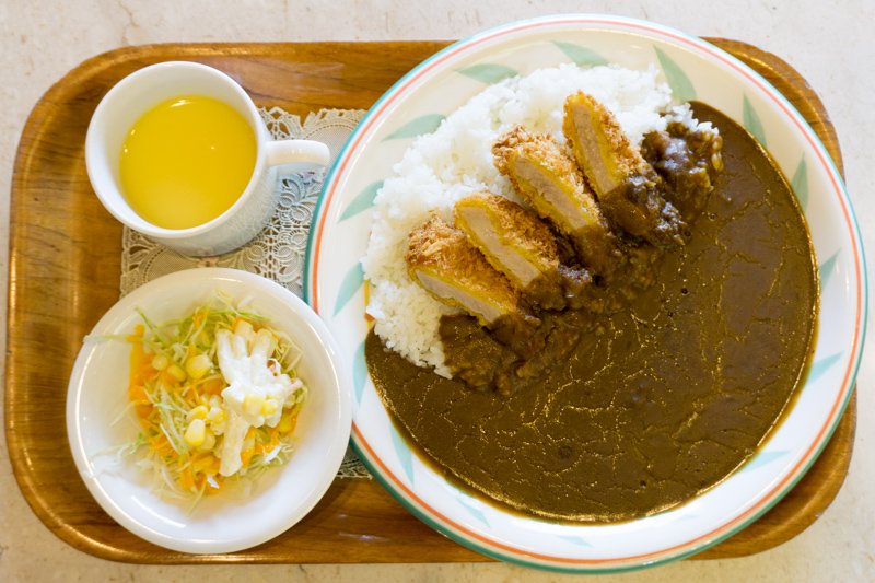 日替わりカレーを選ぶとサラダとスープが付いてきます。