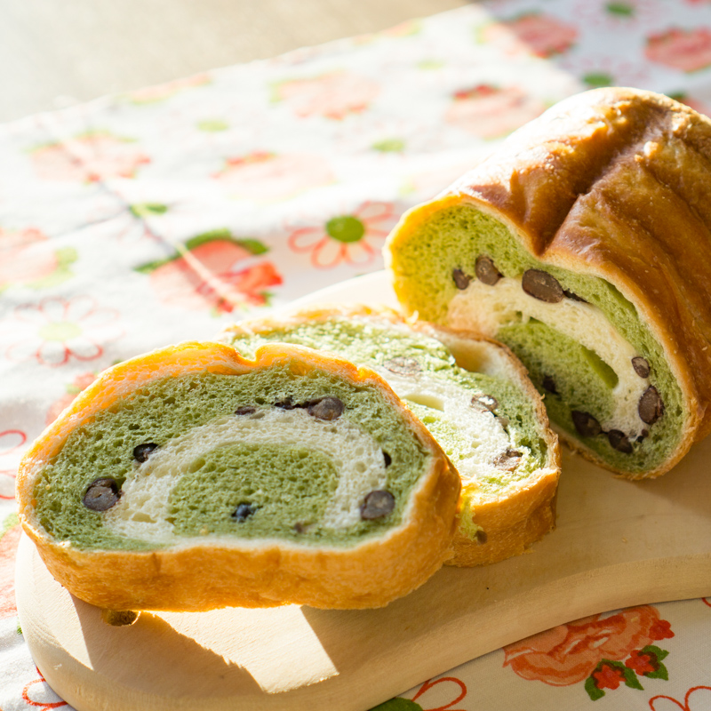 食べてみるとほんのり甘く、生地はしっとりフワフワ、抹茶風味が口いっぱいに広がります!ゴロゴロっと入ってる小豆もアクセントになっています。熱いお茶にはもちろん、コーヒーにもぴったり。軽くトーストしても美味しい◎
