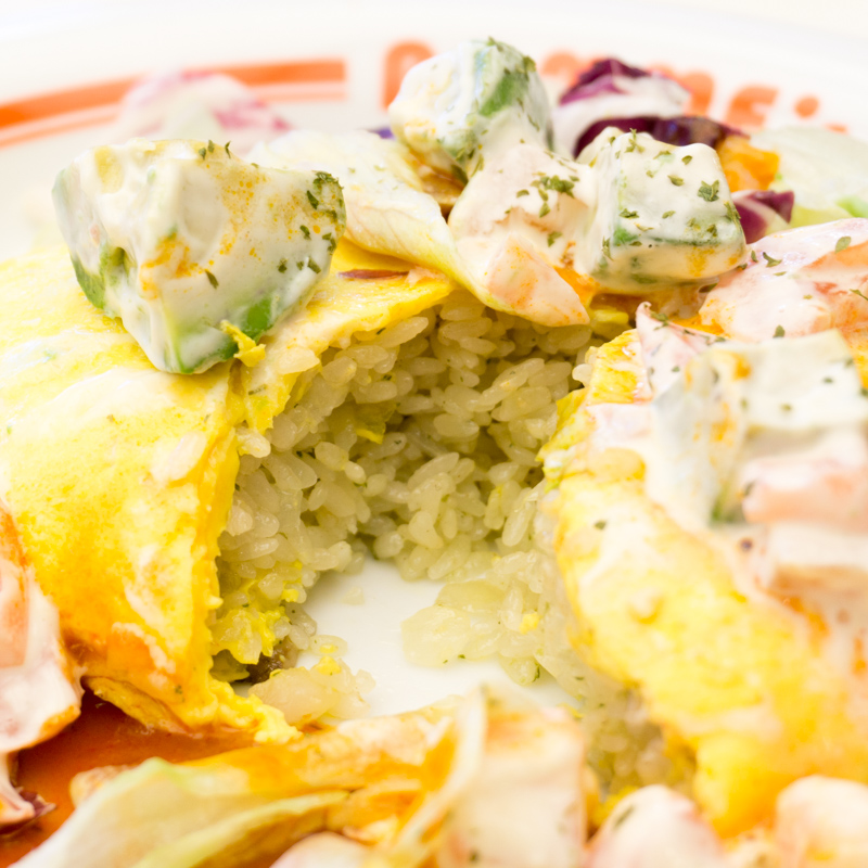 オムライスの上にはマヨネーズで和えたゴロゴロのアボカドとトマト、そしてざくざくカットのレタスがたっぷり!ソースはイタリアンソース。濃すぎずあっさり過ぎず、ちょうどいい味でした。夏バテ気味でもスッキリ食べられて、女性に大人気のメニューとのこと。