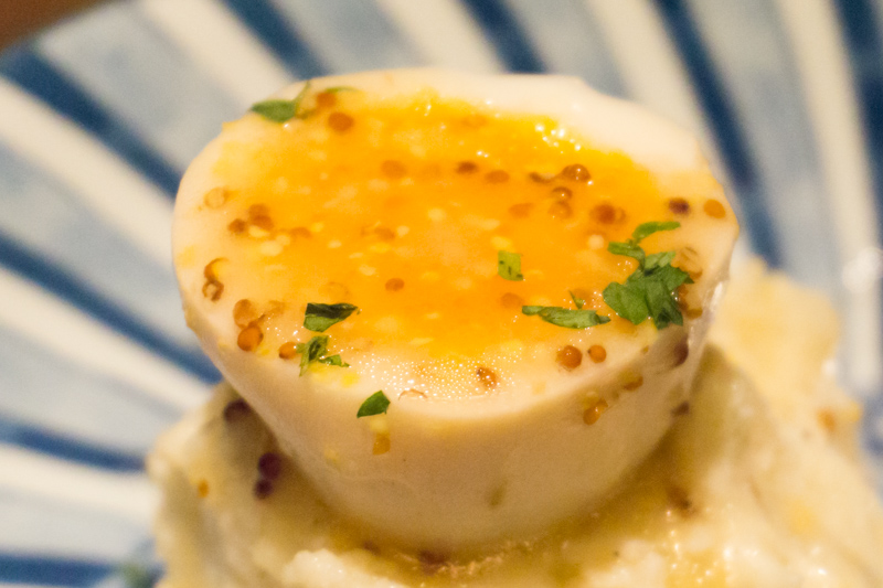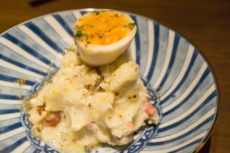 上にトロットロの半熟卵がのってます。ブラックペッパー・マスタード・酢の風味がきいていて、まさにオトナの味!ベーコンがしっかり歯ごたえがあって美味しい。