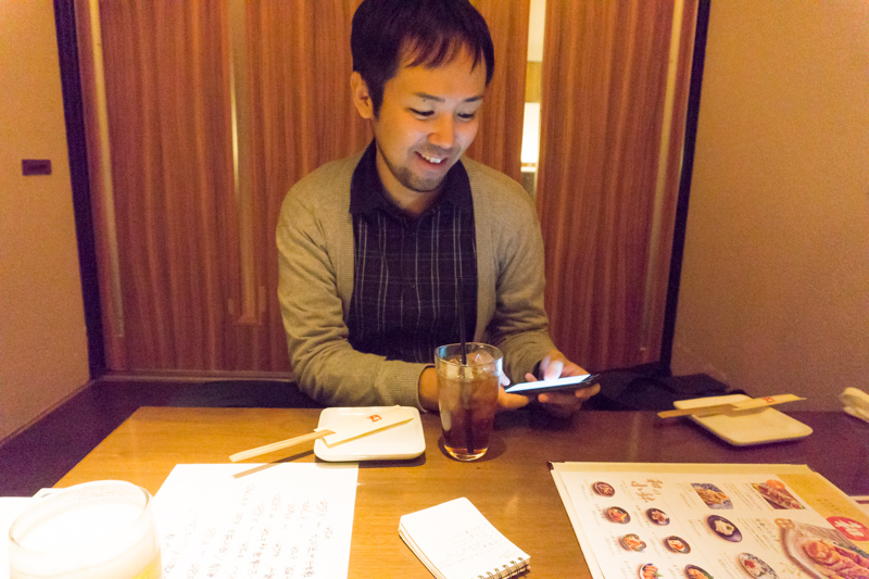 おさやが店内写真を撮影して戻ってくると、一生懸命メニューを見つめるはらだがいました。