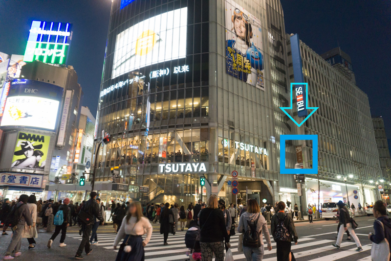 渋谷のぷん楽はどこにあるかと言うと、スクランブル交差点の…