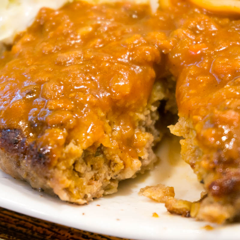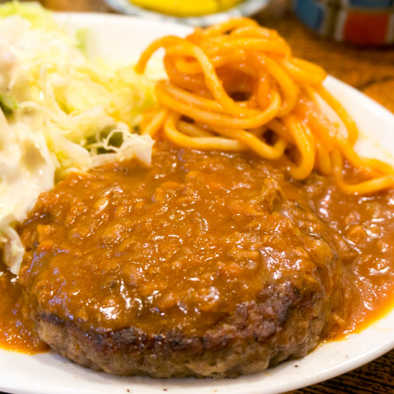 ミートソースのかかったハンバーグ。