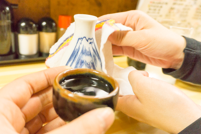 お姉さんがオススメの日本酒「銀嶺館山」の燗を頼んでくれました!