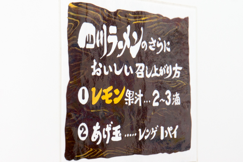 初めはトッピングなしで食べ始めて、途中からレモン果汁とあげ玉を追加したのですが、レモンのさわやかな酸味はピリ辛マイルドなラーメンにぴったり。レモン果汁をいれたことで後味がすっきりした印象になり、あっという間に完食。