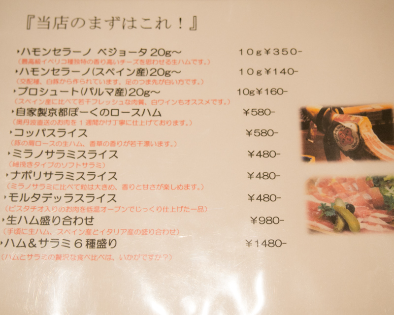 手前の濃い色の方はスペイン産のハモンセラーノ。香り高いハムだな。」