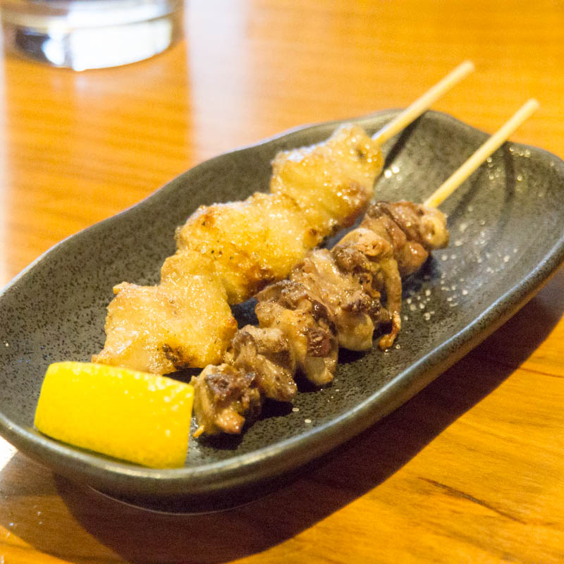 左から焼き鳥の「心のこり(180円)」と「ぼんじり(160円)」