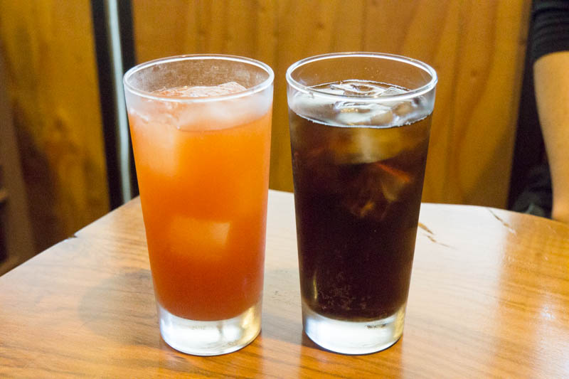 「燃える・トマト酢チューハイ(420円)」と「コーラ(210円)」でした。