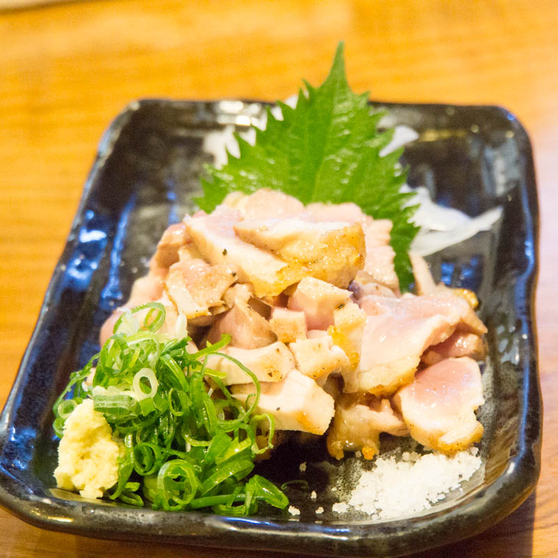 まずは常連さんのオススメで注文した「地どりのタタキ(680円)」