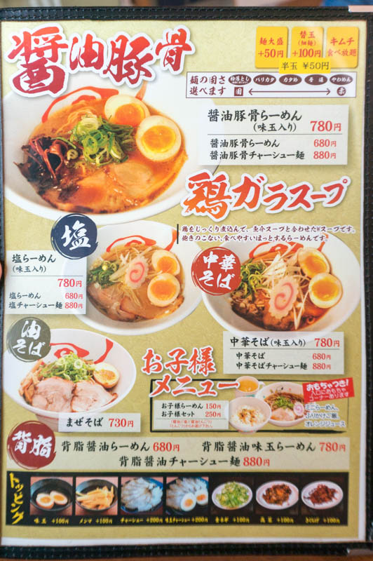 お店の看板にも大きく「醤油豚骨らーめん」と書いていたので、醤油豚骨らーめんを注文。