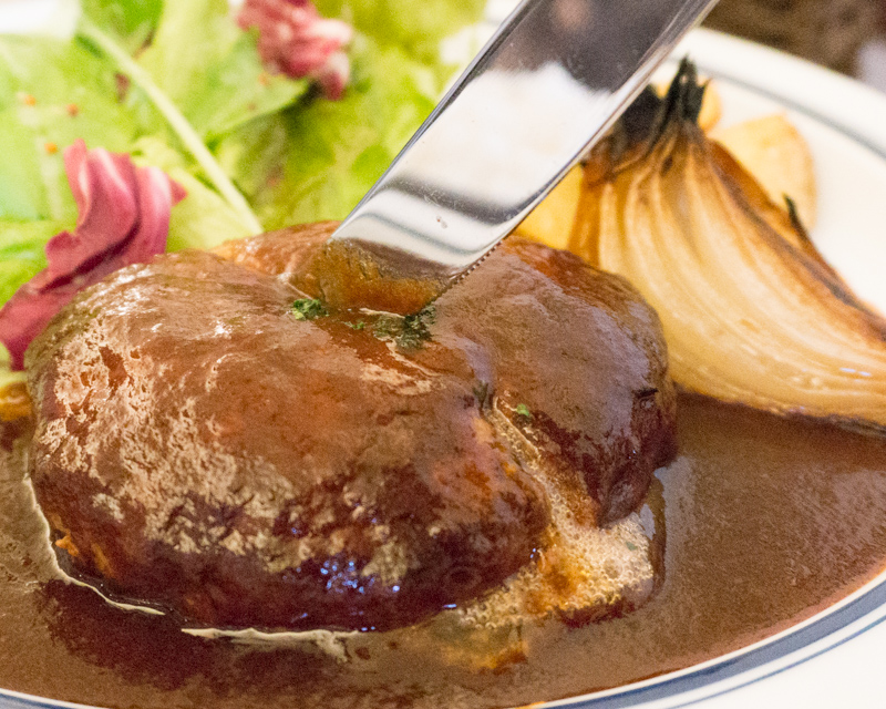 火が通ってハンバーグが一番温まっているときこそが肉汁も一番多い食べごろなんだとか。