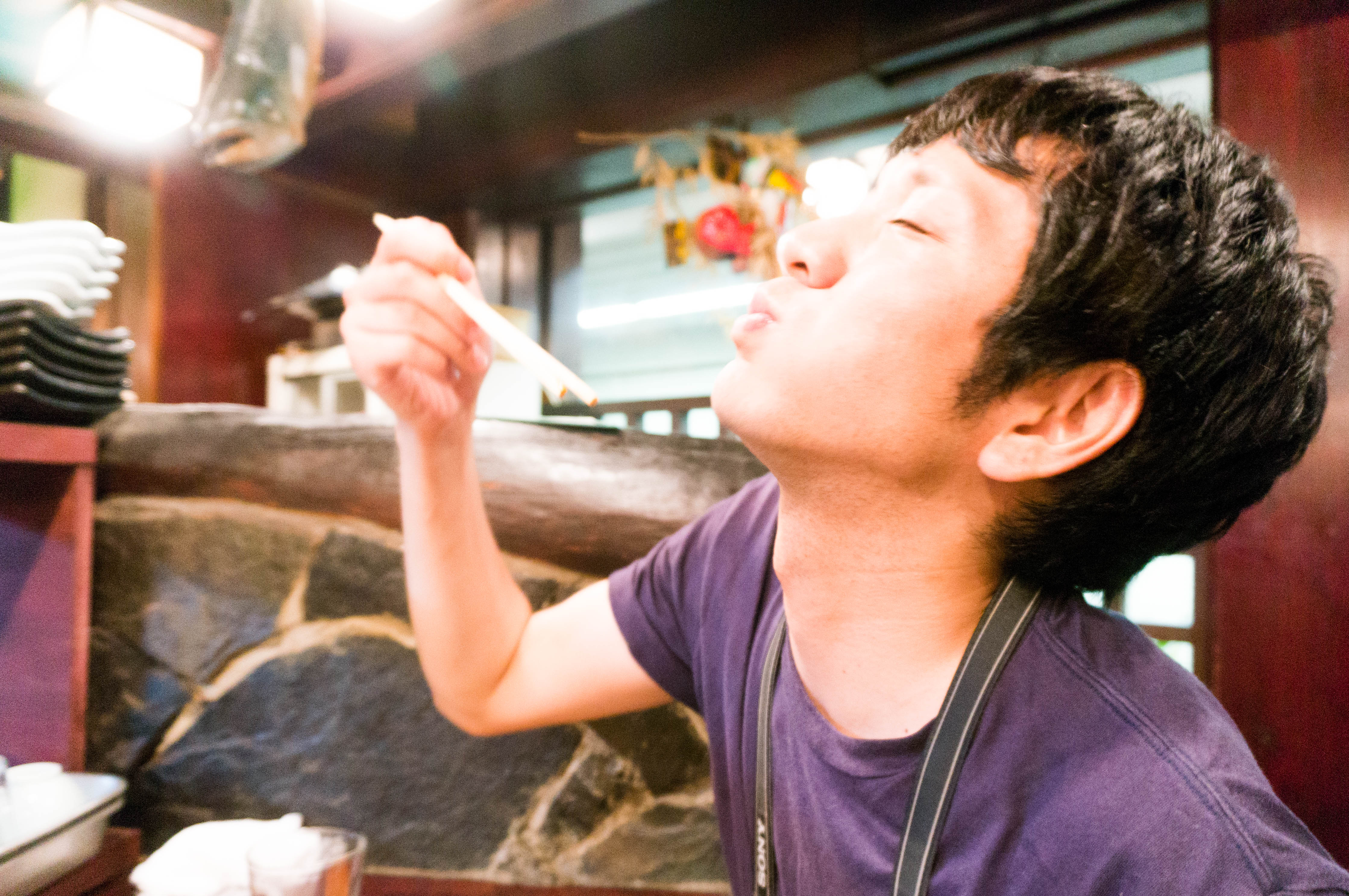 「僕、お寿司と言ったら回転寿司ばっかりなんですけど、居酒屋で本格的なモノが食べれるっていいですね〜! 」